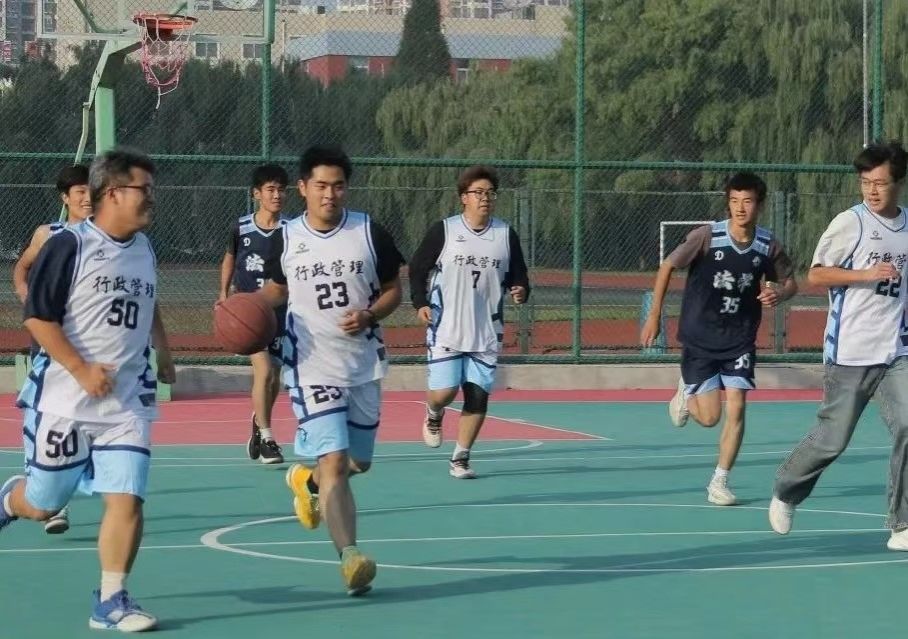 紧张而细致的调整过后,下半场比赛开始。法学队的球员们展现出更加出色的团队协作和战术执行力,行管队的球员们也积极防守,奋力抵抗。随着时间的推移,比赛进入了白热化阶段,双方的比分交替上升,观众们的欢呼声与掌声也越来越热烈。最终,法学队以48:27的比分战胜了行管队,同时也夺得了此次“新生杯”篮球赛的桂冠。