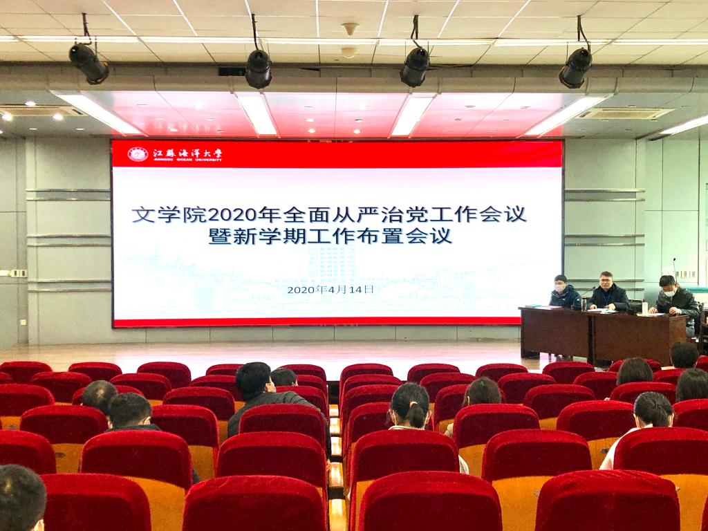 4月14日下午,文学院2020年全面从严治党工作会议暨新学期工作布置会在艺术楼报告厅召开。会议由经理吴明忠主持,mansion88明升党委副书记田德勇、副经理唐浩和全体教职工参加会议。