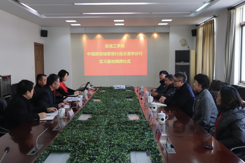 12月12日上午,文学院在中国邮政储蓄银行连云港分行举行教学实习基地揭牌仪式。中国邮政储蓄银行连云港分行副行长杨思鉴和相关部门业务单位负责同志,文学院经理吴明忠,副经理芦海英,新闻系主任班允凤,广告系主任谢朝清,中文系副主任唐浩出席揭牌仪式。