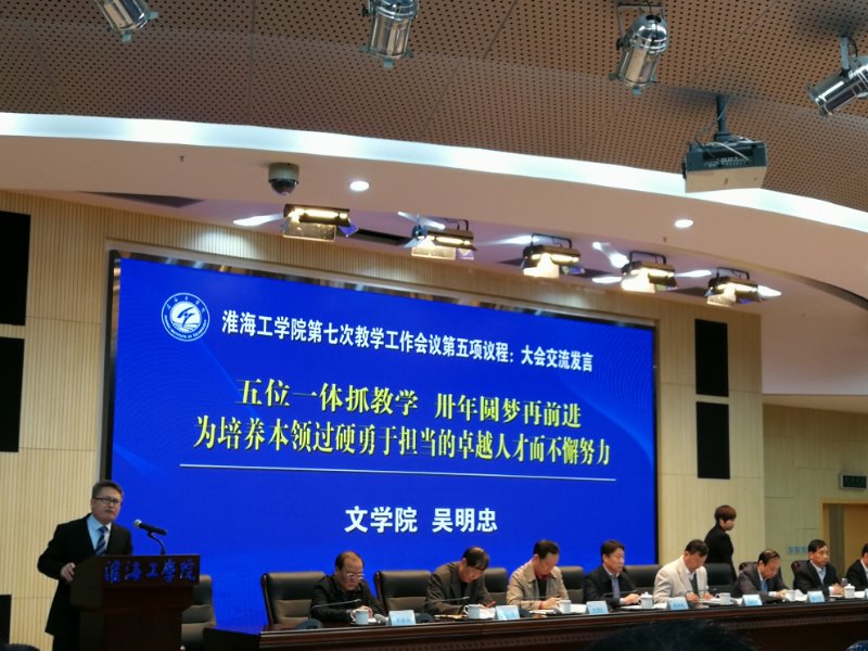 吴明忠经理以“五位一体抓教学卅年圆梦在前进为培养本领过硬勇于担当的卓越人才而不懈努力”为题,在校教学工作会议上代表文学院进行发言:“公司在近几年,始终坚持教学工作中心地位不动摇,以申硕工作引领教学、打造队伍支撑教学、深化改革激活教学、从严管理规范教学、改善条件保障教学,五位一体,协同发力,全面提升人才培养质量和育人水平。”