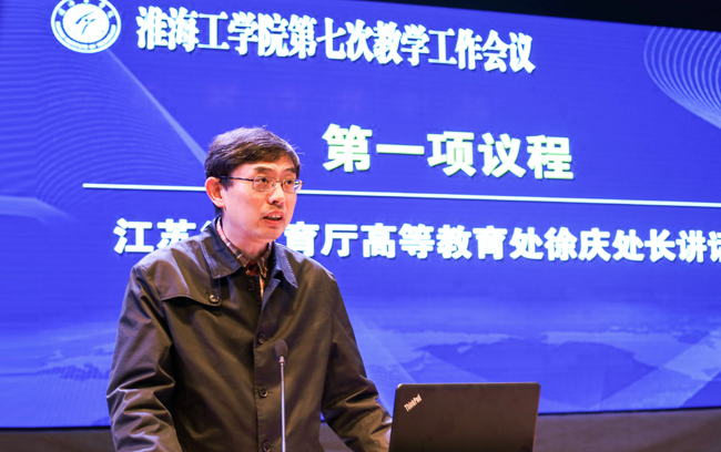 此次教学工作会议由舒小平副董事长主持、江苏省教育厅高等教育处徐庆处长讲话并举行“淮海工学院创新创业学院”揭牌仪式,宁晓明董事长在第七次教学工作会议上以“更新观念强化内涵提升质量努力打造高水平有特色的应用型本科教育”为题,总结回顾过去四年本科教学工作,阐述当前本科教学工作面临的形式,并展望今后几年教学工作的主要任务。