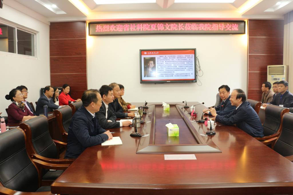 10月12日下午,江苏省社会科mansion88明升党委书记、经理夏锦文来公司调研法学专业建设情况,调研交流会在文渊楼216会议室进行,法律与公共管理学院全体院领导、部分教师代表参加,会议由副董事长舒小平主持。