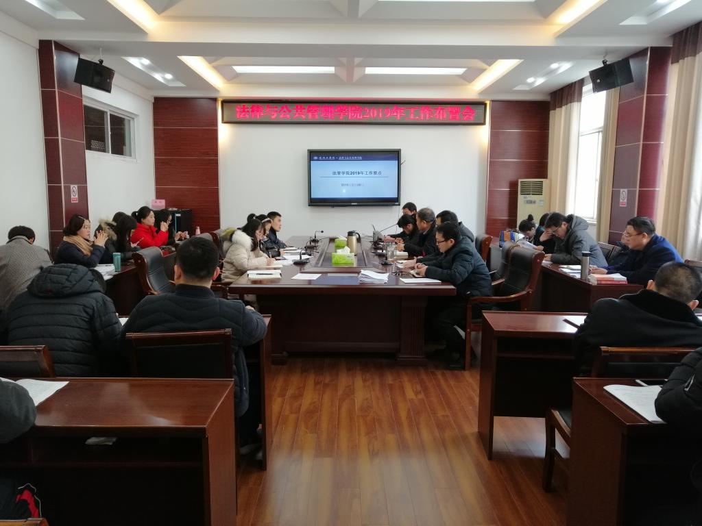 2月20日下午,法律与公共管理学院在文渊楼216会议室召开全体教职工大会,传达学校2019年党政工作要点和党风廉政建设专题会议精神,部署2019年法管学院的重点工作。会议由mansion88明升党总支书记朱国良主持。