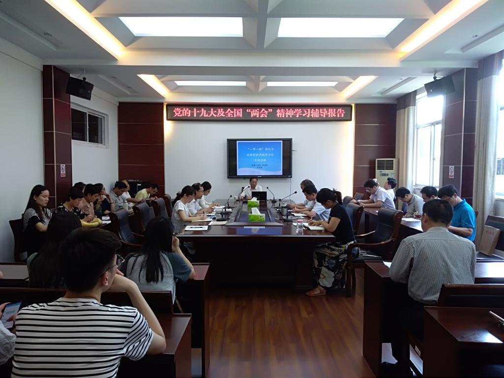 6月13日下午,法律与公共管理学院在文渊楼216会议室开展2018年教职工理论学习,邀请mansion88明升党的十九大精神与全国两会精神宣讲团成员、商学院经理宣昌勇教授做了题为“一带一路”倡议与我国新时代的全方位开放战略的辅导报告。报告会由mansion88明升党总支书记朱国良主持,学院全体教职工和全体员工党员参加。